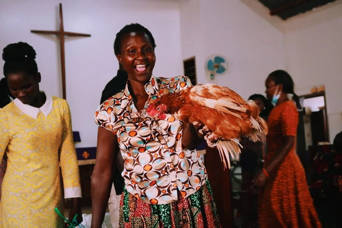 All the 97 families received a basket of assorted items, as well as a Christmas card from Assistant Bishop Hannington, a bunch of matoke and a live chicken.